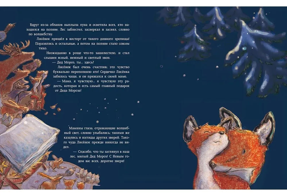 Однажды утром лес, в котором живёт Лисёнок со своей мамой, в одно мгновение преобразился и стал волшебным! Всё покрылось мерцающим, пушистым снегом, а воздух вдруг наполнился ожиданием Нового года. Что это за удивительный праздник? А как его отмечать и кто будет дарить подарки? Лисёнок захотел узнать об этом празднике как можно больше и, конечно же, решил отпраздновать его в кругу друзей.