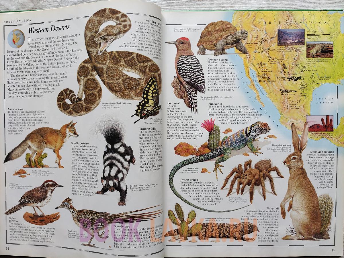 Surveys the rich diversity of animal life, continent by continent, featuring illustrations of more than 350 animals, birds, reptiles and insects from all over the world. Maps show which animals live where, with photographs of habitats and the types of vegetation worldwide. Up-to-date information on environmental issues affecting the world's wildlife and what can be done to save endangered species is also included. Each spread is devoted to a particular type of habitat, such as the Amazonian rainforest, the Australian outback or the Himalayas, and shows more than 12 of the most important or unusual animals found in each region.