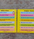 На карточках изображена достопримечательности разных городов мира: отмечены исторические здания, знаменитости, памятные места. В разделе «Did you know?» можно узнать много интересных фактов из жизни города. Каждая иллюстрация насыщена информацией, изучив которую, Вам и предстоит ответить на несколько вопросов на обратной стороне карточки.