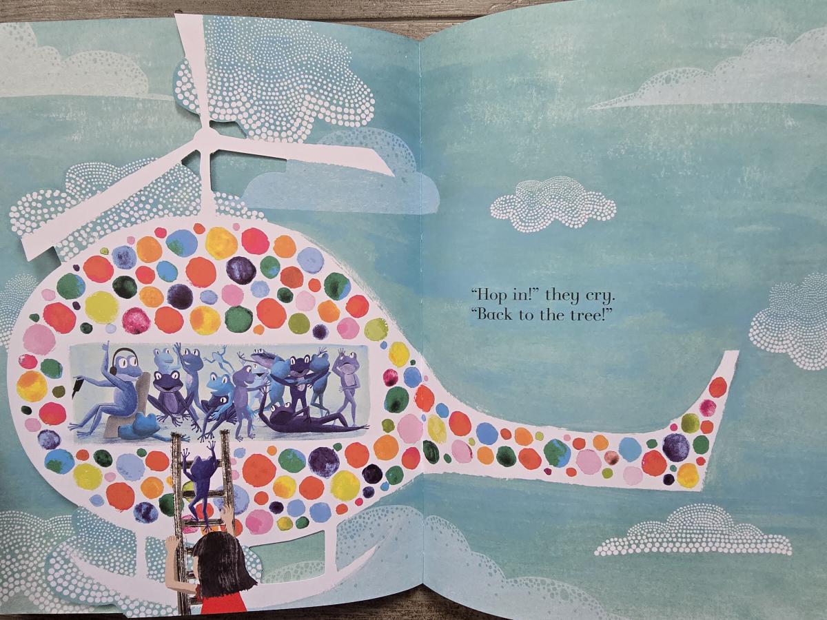 Следуйте за маленькой девочкой в «Цветах, цветах повсюду», пока она рисует свое собственное приключение со своим ярко-синим компаньоном — древесной лягушкой.