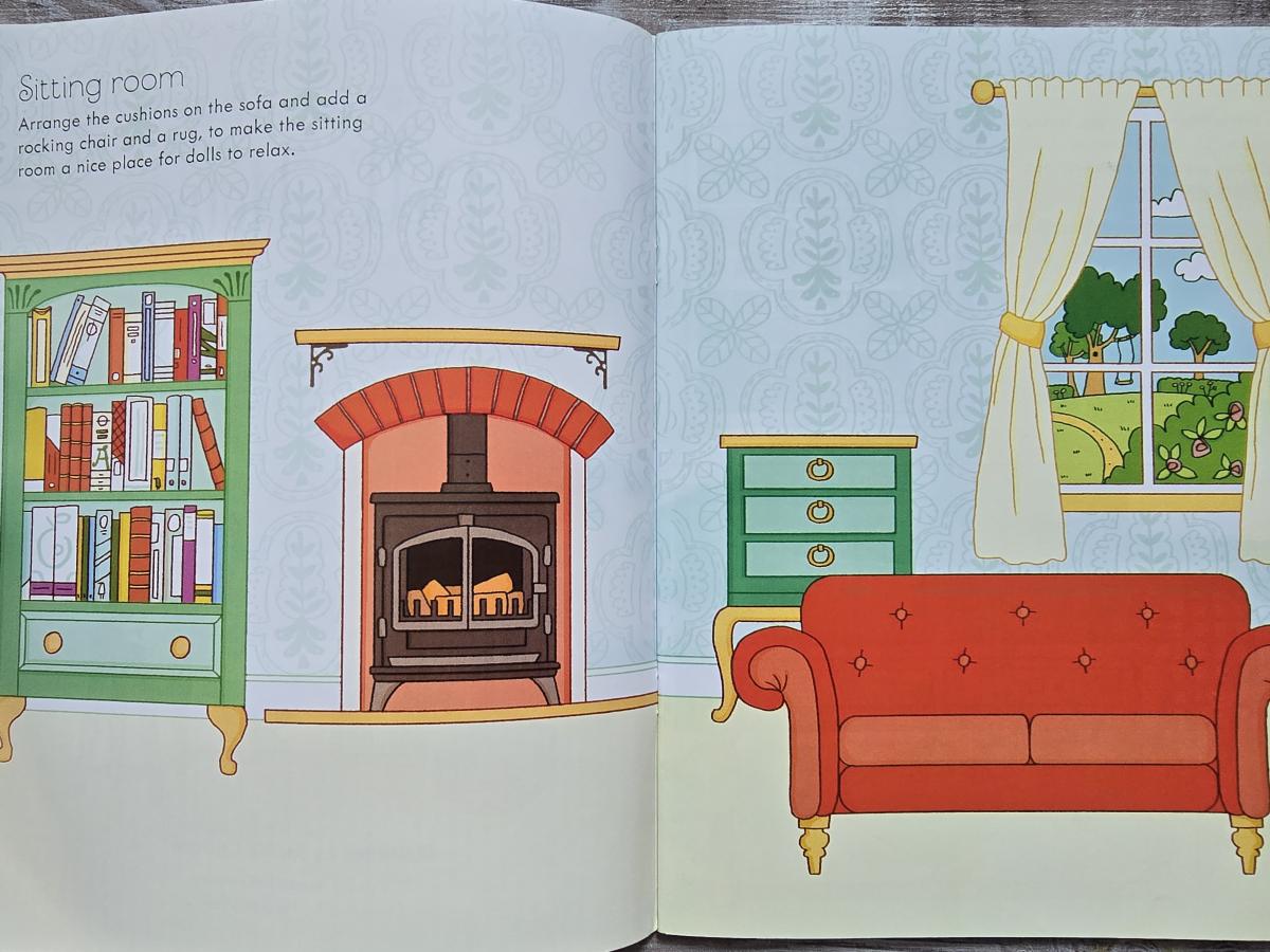 Восхитительная книжка с наклейками для кукольного домика, в которую входит более 180 наклеек с красивой мебелью и аксессуарами. Дети могут заполнить красочную игровую комнату игрушками, книгами и играми, приготовить вкусные блюда на кухне и найти место для плюшевой обезьянки Зиппи в спальне. Увлекательный способ потренировать мелкую моторику.
