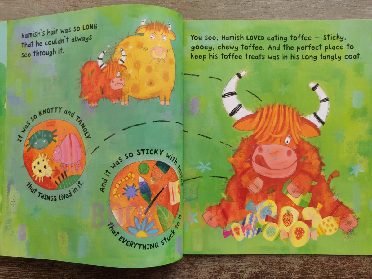 Hamish is a Highland cow and VERY hairy. He hates having baths and NEVER cuts his hair. Why should he when his shaggy coat is the perfect place to keep his favourite sweet - toffees! But one day his friends get fed up with the increasingly smelly Hamish, and they hatch a plan that involves a hairdresser and, yes, toffees! An exuberant story with bold, bright illustrations from a very talented artist. 'Russell's bright-eyed cast, including sheep with coloured rinses, is full of character and her text is deftly delivered - it's a gift to read aloud.' Scottish Sunday Herald