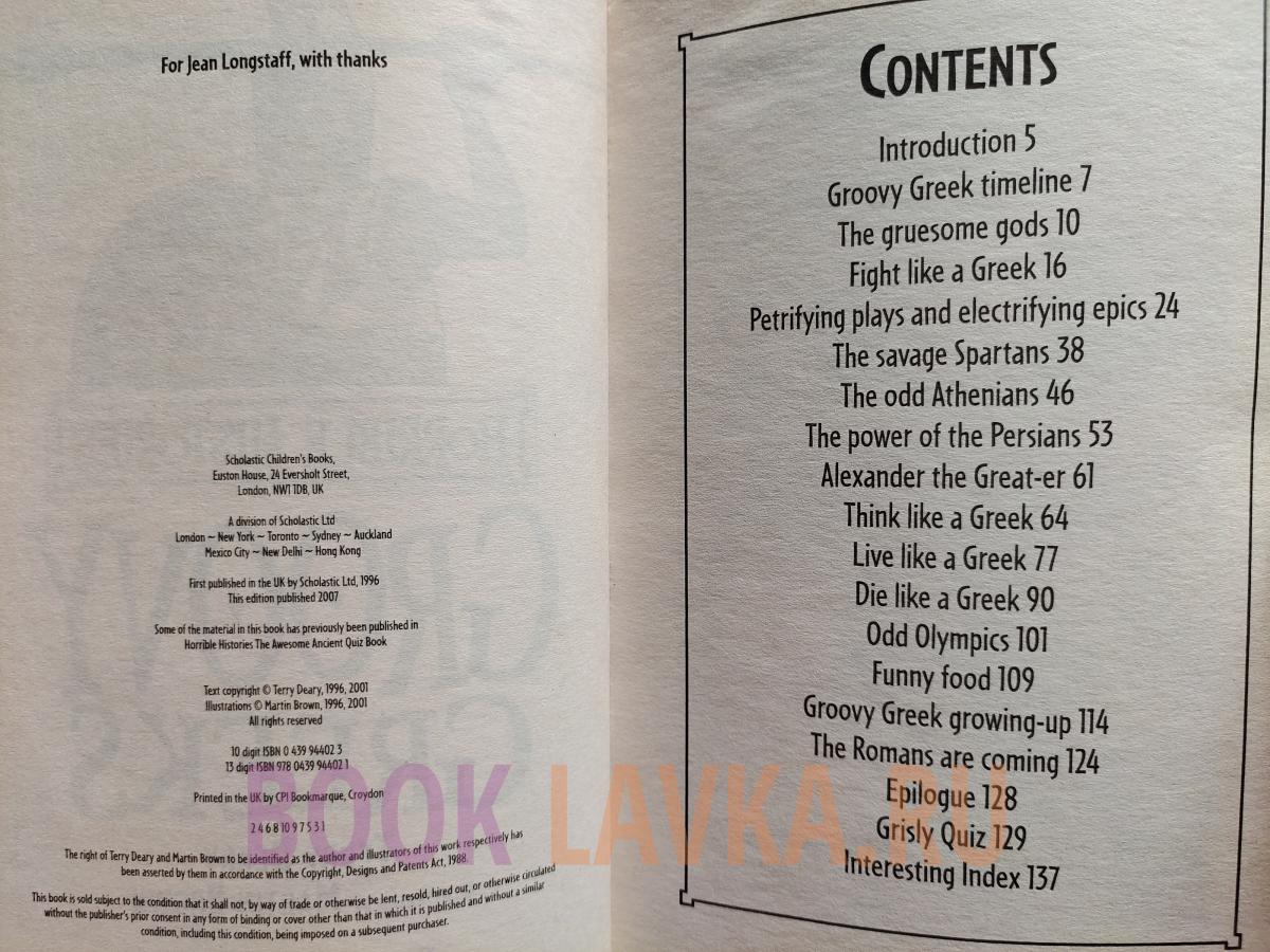 Apparently the ancient Greeks were a rather groovy bunch. The boys didn't start school until they were seven, and girls didn't have to go at all. But it wasn't always so jolly. Readers can discover why girls ran about naked pretending to be bears, who had the world's first flushing toilet and why dedicated doctors tasted their patients' ear wax! History with the nasty bits left in! 2013 is HORRIBLE HISTORIES twentieth anniversary.