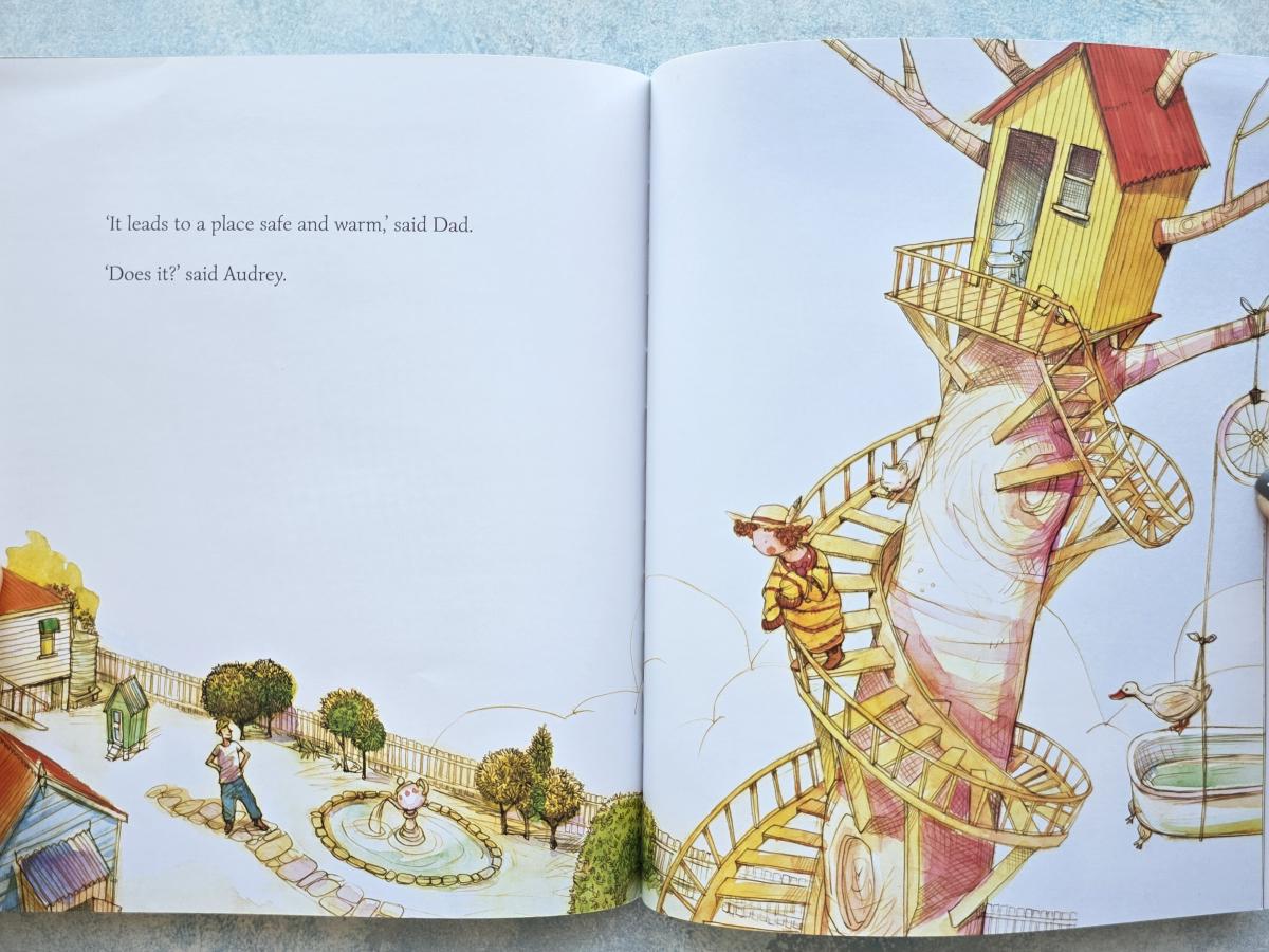 Одри вдруг понимает: она стала больше, чем была вчера. Значит, нужен новый, более просторный дом! Папа берётся за дело и строит для неё настоящий дом на дереве. Там есть ванна для подводного плавания, уютное место для чая и даже уголок, куда можно спрятать грязные чашки. Кажется, этот дом — просто мечта. Вот только у него есть один маленький недостаток...