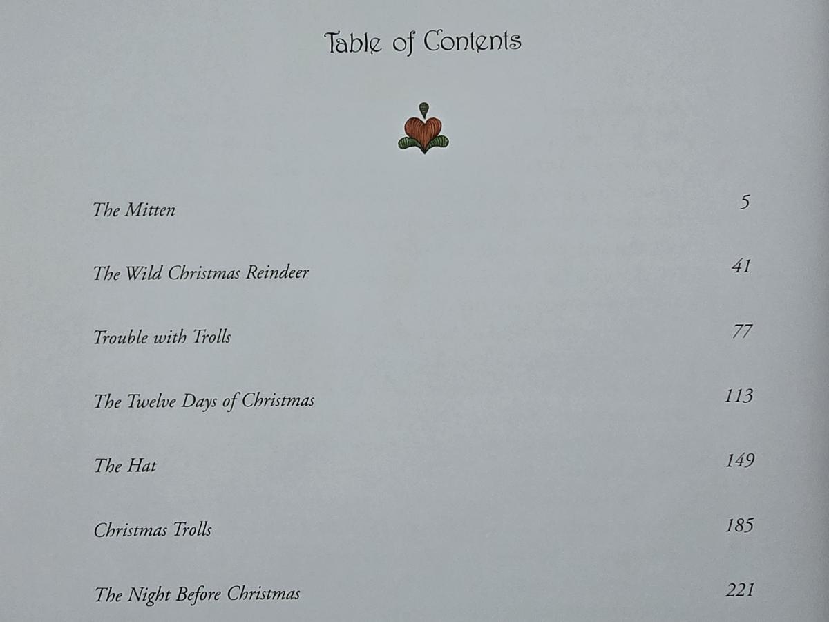 Эта роскошная рождественская коллекция — идеальный подарок на праздники! В неё входят семь самых любимых рождественских произведений Джен Бретт: «Ночь перед Рождеством», «Неприятности с троллями», «Рождественские тролли», «Варежка», «Шляпа», «Двенадцать дней Рождества» и «Дикий рождественский олень».