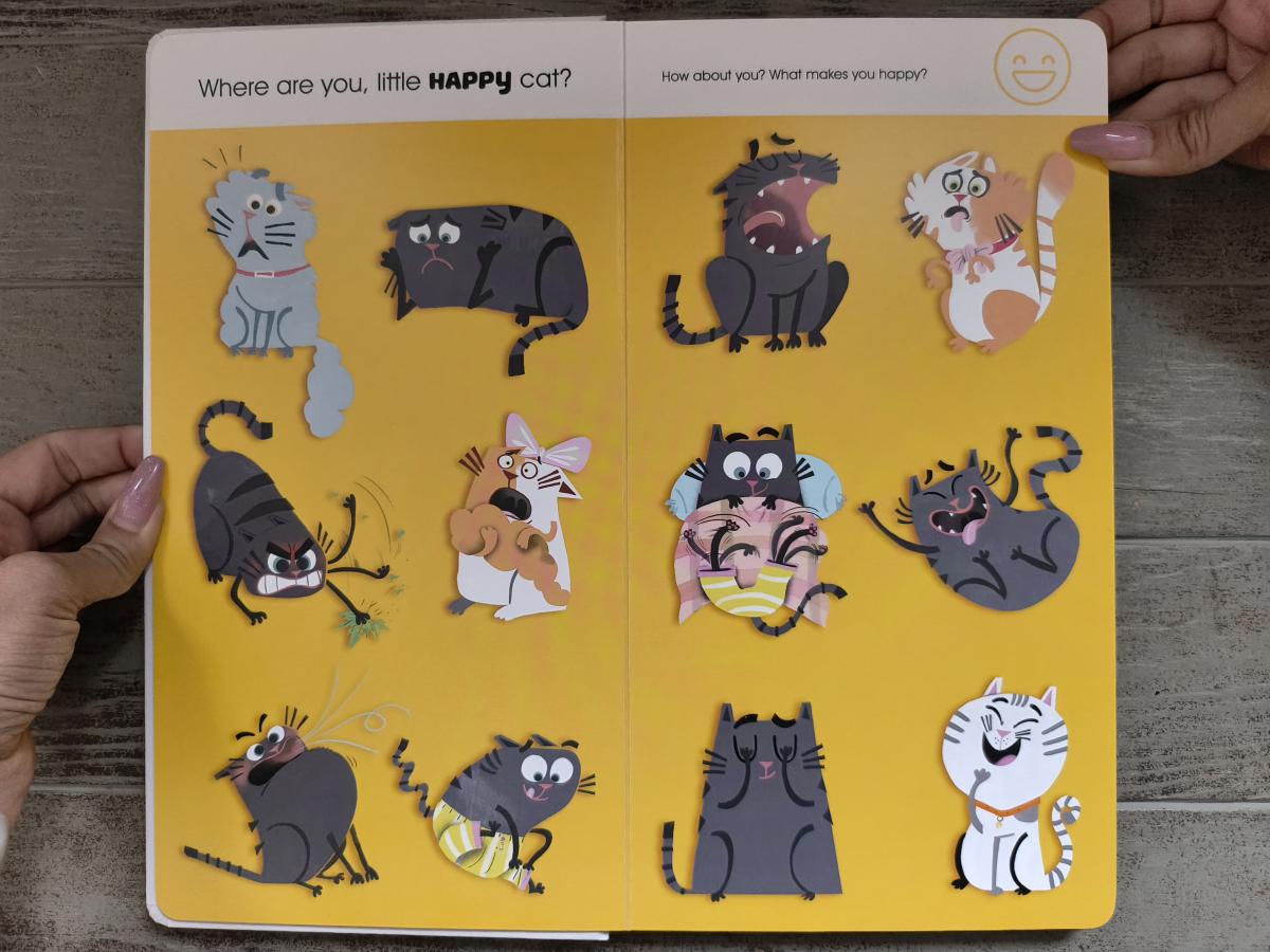 Маленький котик играет в прятки с эмоциями: радостью, злостью, усталостью, тревогой, удивлением. На каждом развороте ребёнок рассматривает котов с разными выражениями и пытается угадать, какое чувство они переживают, а заодно задумывается о себе – что радует, что злит, кого он любит. История превращается в диалог и мягкое исследование внутреннего мира.