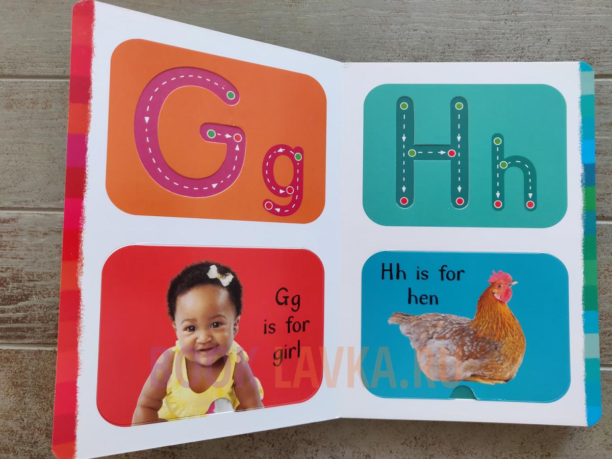 Каждая страница этой интерактивной книги содержит крупные рифленые буквы, дополненные стрелками направления, по которым дети могут водить пальцами. Потренируйтесь в правильном формировании, прежде чем поднимать флэп, чтобы узнать, что находится под ним.