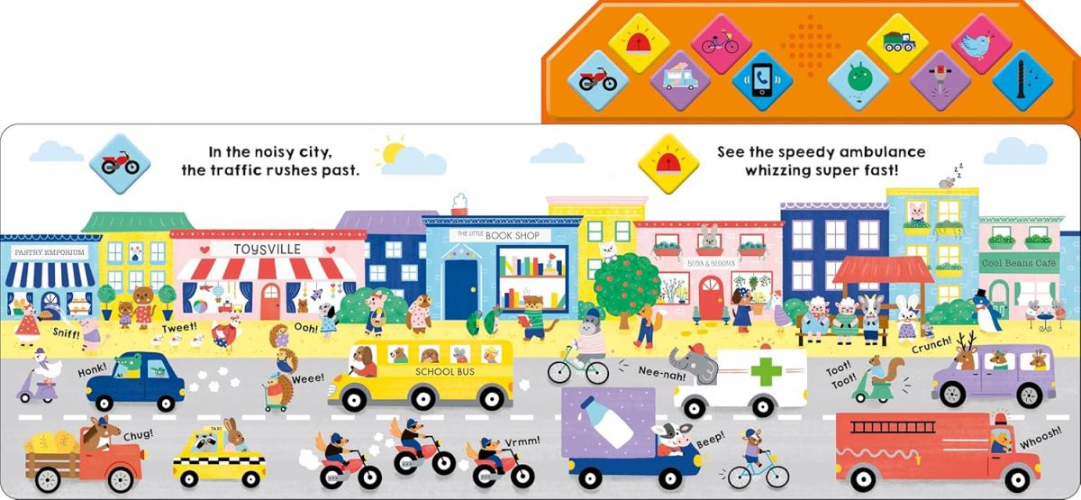 Благодаря десяти забавным звукам и оживленным городским сценам, которые можно исследовать, малышам понравится участвовать в действии в "Что ты слышишь?: В городе" - новой фантастической серии звуковых книг от издательства Priddy Books.