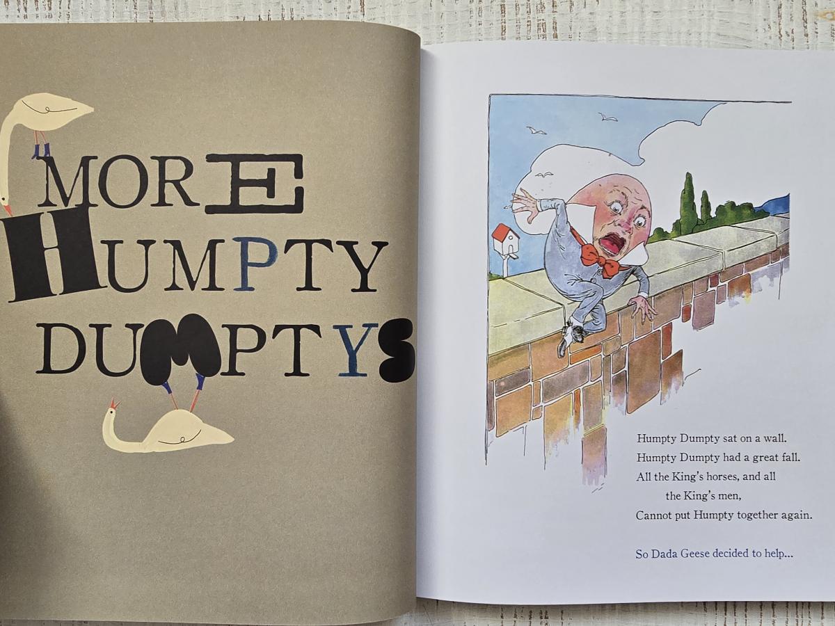 В игровой форме реконструированные тридцать шесть старых и новых рифмовок содержат еще больше нелепостей, привлекая внимание детей к шутке и приглашая их переосмыслить ее.