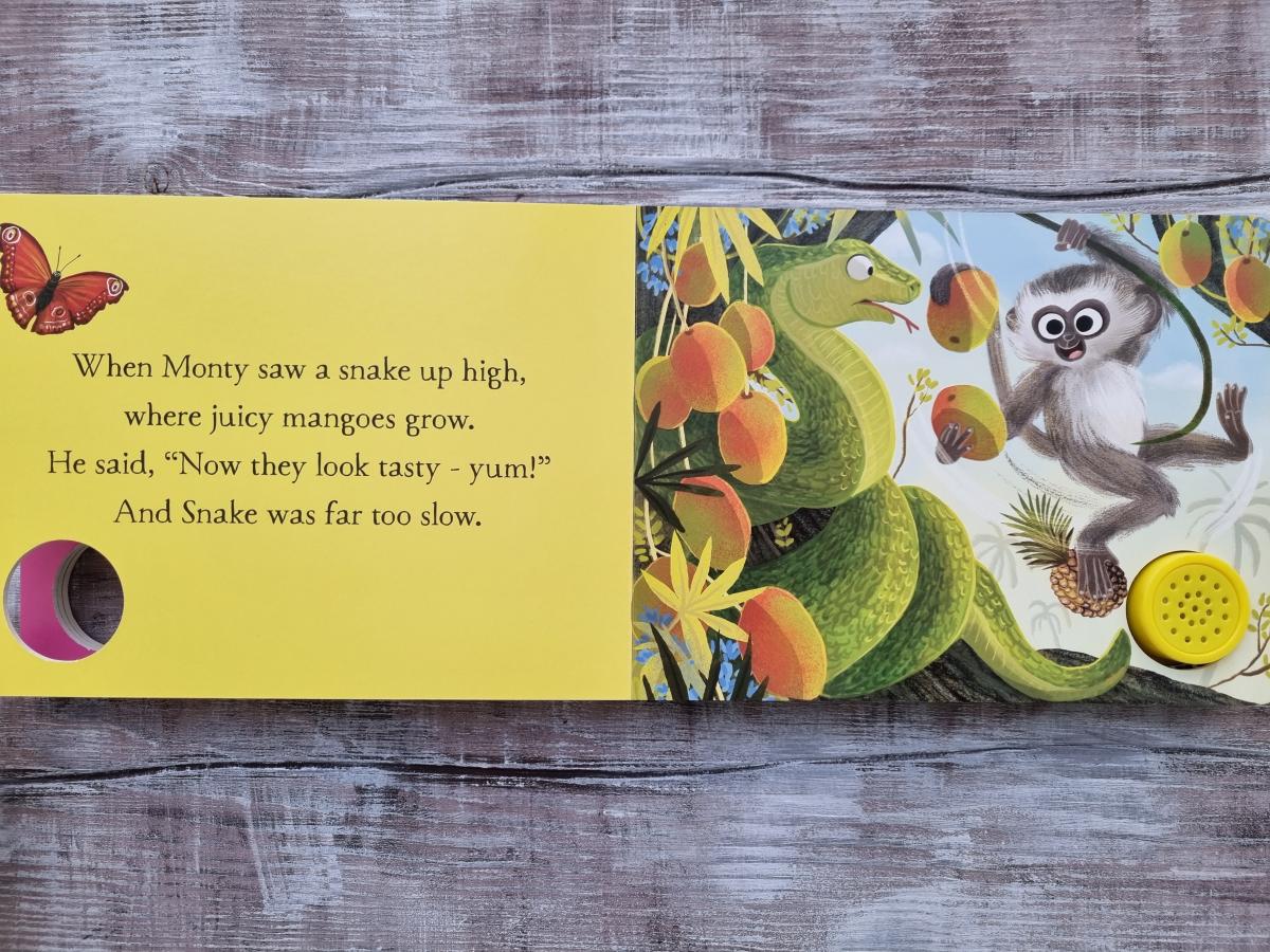 will love pressing again and again to hear Monty's monkey noise on every