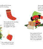 Все слышали о старушке, которая проглотила муху, но теперь пришло время познакомиться с маленьким северным оленем, который в самую важную ночь в году (канун Рождества!) проглатывает подарок. И на этом он не останавливается! Вскоре он проглотил эльфа, безделушку, дерево... Что он проглотит дальше?
