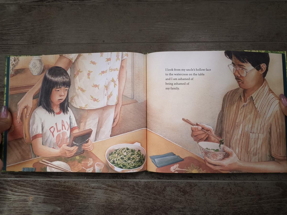 Проезжая через Огайо в старом Pontiac, семья останавливается у канавы, где растёт водяной кресс-салат. Родители берут ножницы и бумажный пакет, а вся семья идёт в грязь собирать траву. Сначала девочке неловко — почему не купить еду в магазине, как все? Но мама рассказывает историю их семьи, что родом из Китая, и девочка понимает, что вместе с травой они собирают воспоминания и связь с прошлым.