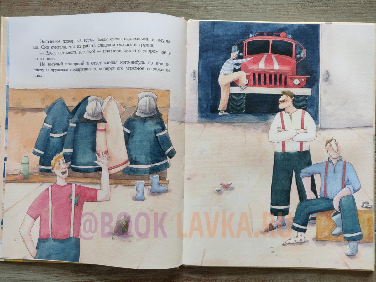 Пожарным быть очень непросто! В любое время суток, в любую погоду он готов идти в огонь и в воду. Но какой бы серьёзной ни была эта профессия - ведь с огнём шутки плохи, - всё-таки чувство юмора не помешает и в таком сложном деле.Главный герой этой удивительной истории очень любит свою работу, относится к ней ответственно, но пока едет в пожарной машине обязательно нарисует на стекле весёлую рожицу, а когда спасает людей - рассказывает им забавные истории, чтобы не было так страшно.Иллюстрации к сказке о весёлом пожарном создала художница Дарья Григорьева.