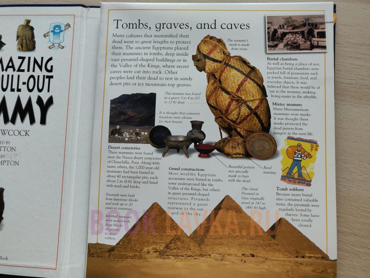 Unfold this 1.5 metre high 3D Pop-Up to reveal the mummy of Tutankhamun in his full splendour. Flip the flaps to reveal hidden treasures pull back the death mask to see the mummy's skull. Discover fantastic facts about mummies from around the world and their gruesome secrets.