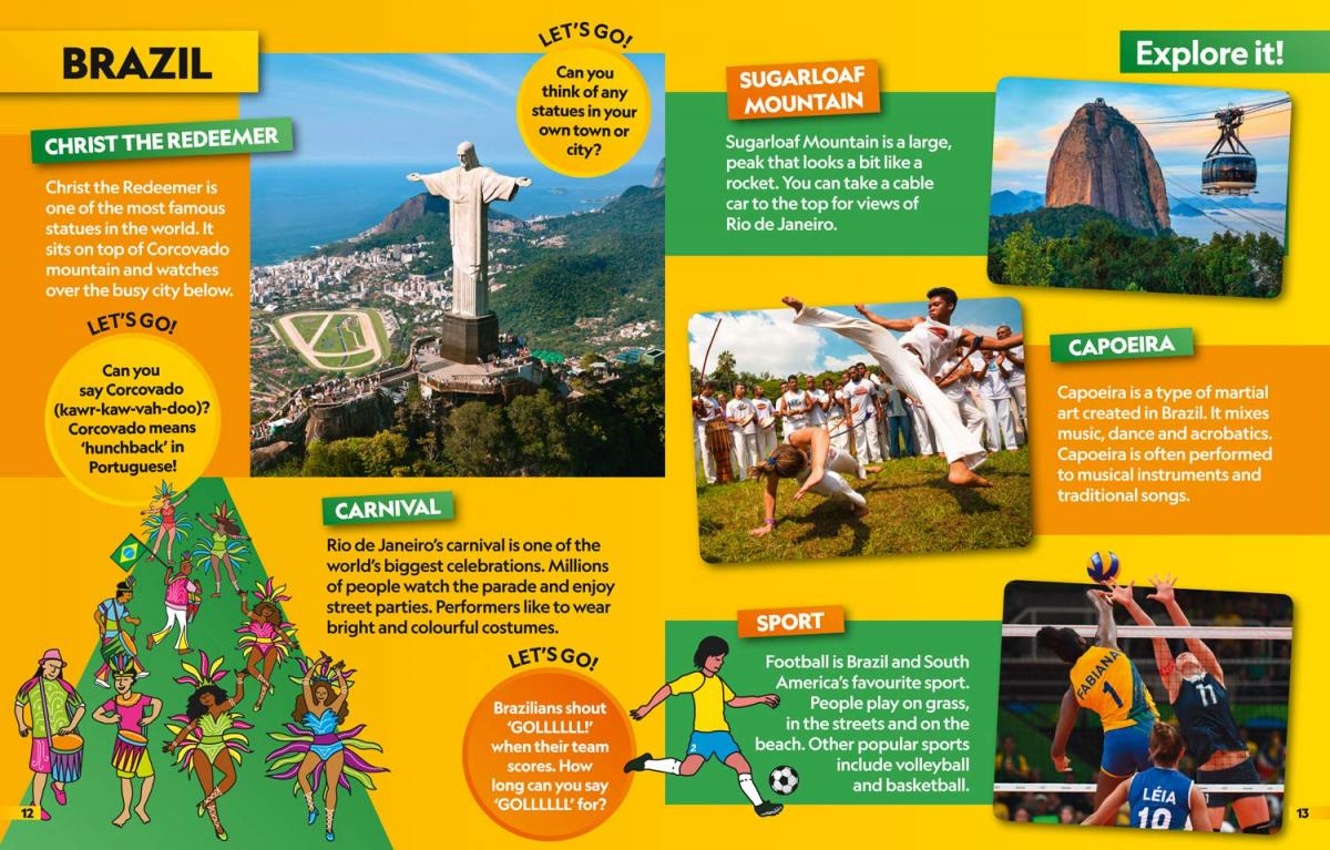 Explore it! Discover amazing facts all about the things spotted. Did you know that Mount Everest is the world’s tallest mountain? That Ayer’s Rock appears to glow red in the sunset and sunrise? Or that Rio Janeiro’s carnival is one of the biggest celebrations in the world?