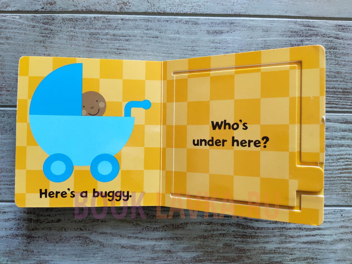 Look at the bright pictures on the left-hand pages. Who's in the rocket? Who's in the buggy? Lift the flaps to reveal the friendly animal characters residing there - peepo! And where's the baby?