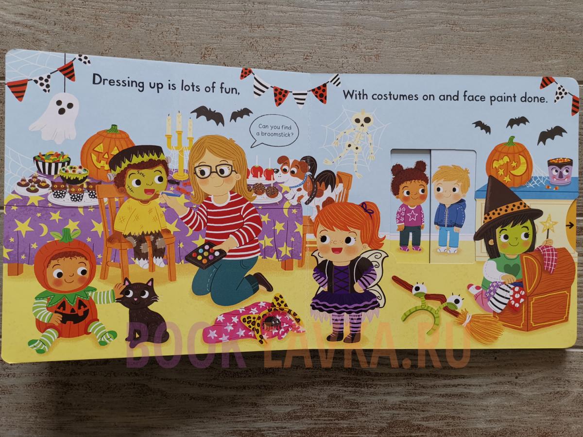 With lots to see in Busy Halloween, children can join in the Halloween fun by pushing, pulling and turning the tabs. Carve a pumpkin, then get dressed up, ready to trick or treat and celebrate at a Halloween party!