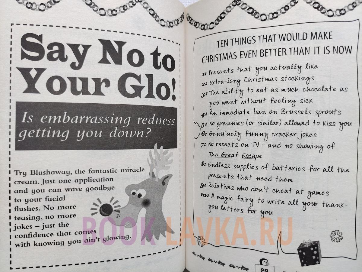 Упакованный с блестящими сезонными шутками вместе с большим количеством глупых вещей, которые будут держать детей хихикать на протяжении всех рождественских каникул. Произнесите нежелательное заклинание Подарка, прочитайте веселые письма Санты и попробуйте Десять лучших вещей, которые можно сделать с оставшейся индейкой. С веселой пародийной рекламой и множеством веселых рождественских функций эта книга действительно внесет хо-хо-хо в ваши праздники.