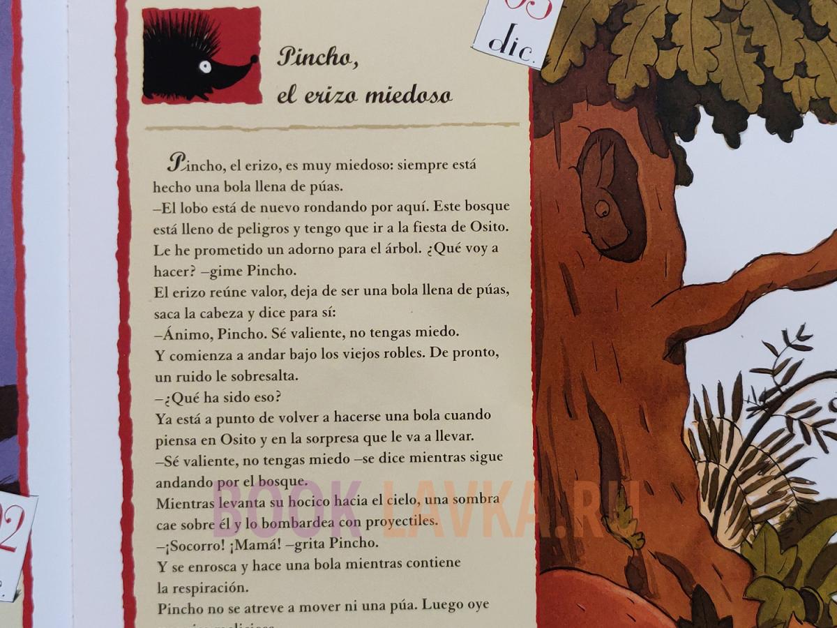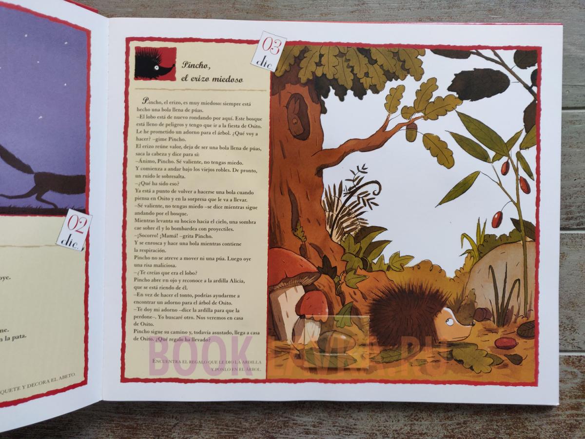 Este libro-regalo navideño tiene un cuento para cada día del Adviento y un abeto para decorar. Cada cuento incluye un pequeño regalo para adornar el abeto. Así, cada día de Adviento se podrá colocar un nuevo adorno en el abeto.