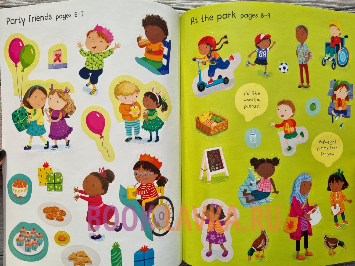There are all sorts of early years activities shown in this delightfully illustrated sticker book, including going to a birthday party, visiting a farm and playing in the playground. There's plenty of descriptive vocabulary for children to learn along the way, along with concepts such as being polite, sharing and taking turns.