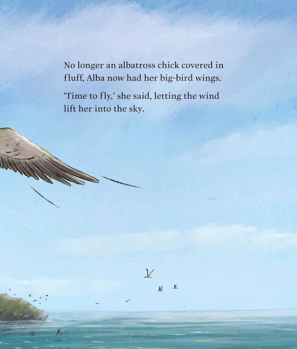 Но затем появляется пингвин, за которым следует еще один и еще один, пока вся колония не оказывается рядом с Альбой. Среди ее новых друзей настроение Альбы быстро поднимается, и в течение долгой темной зимы ее крыло медленно заживает. Когда солнце наконец появляется над горизонтом, Альба наконец снова может летать, но она никогда не забывает доброту, проявленную к ней в самом сердце пингвиньего стада.
