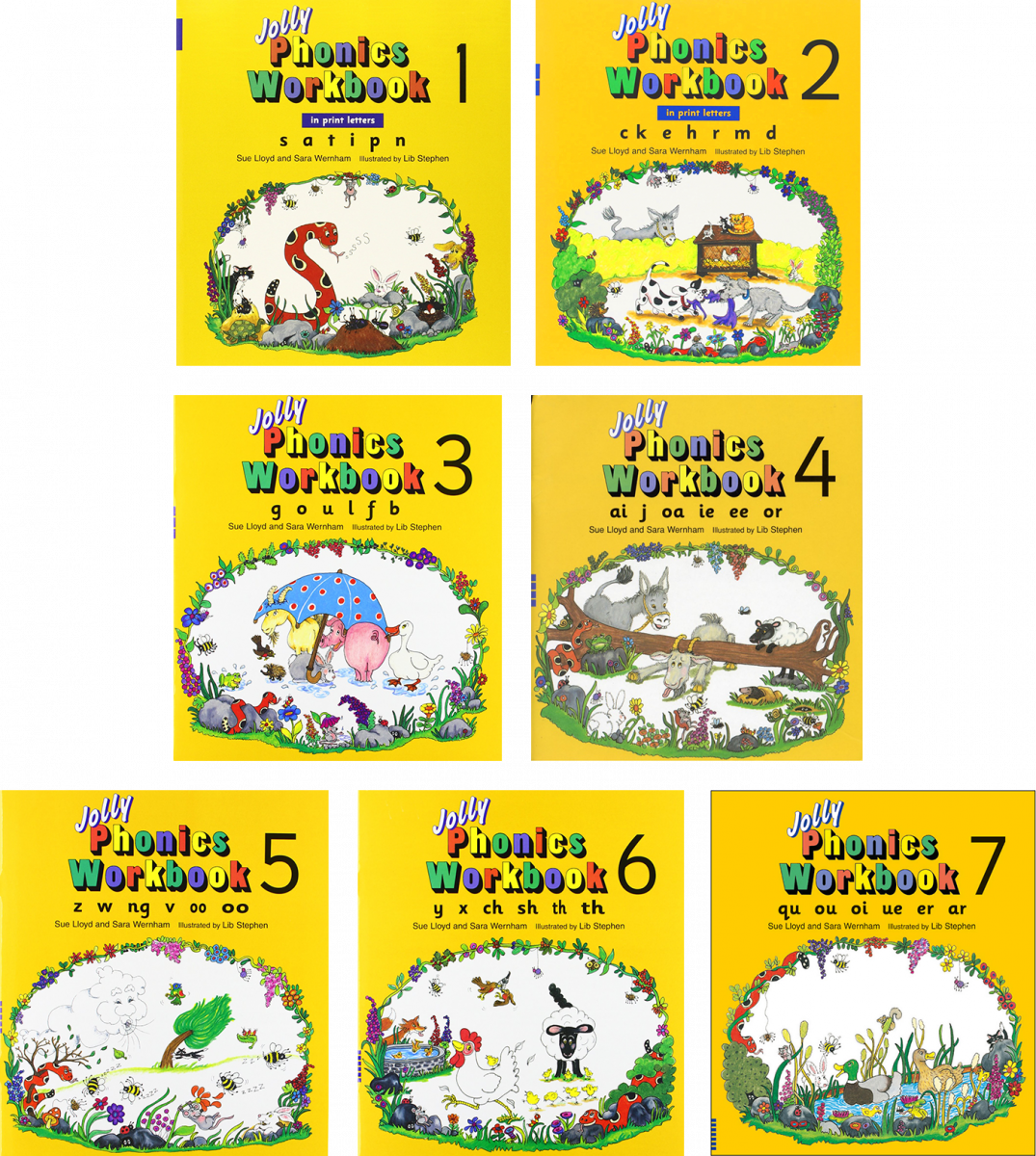 A pack of 16 of the complete set of 7 workbooks, covering all 42 letter sounds. These 24-page workbooks are a fun way for children to put their skills into practice. The first books have simple letter recognition, while later books introduce joined-up (cursive) writing and the alternative spellings of the vowels. Strategies for tricky spellings and challenging puzzles for developing phonic skills are also provided. Each book also contains a checklist which can be used to assess progress. Workbook 1 s, a, t, i, p, n Workbook 2 c k, e, h, r, m, d Workbook 3 g, o, u, l, f, b Workbook 4 ai, j, oa, ie, ee Workbook 5 z, w, ng, v, oo, oo Workbook 6 y, x, ch, sh, th, th Workbook 7 qu, ou, oi, ue, er, ar