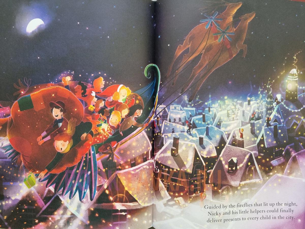 Эта очаровательная книга рассказывает историю маленького Ники Клауса, который хотел сделать каждого ребенка счастливым, хотя бы на один день. Ники Клаус работает со своими тремя дядями в магазине игрушек братьев Клаус. Дядя Ханц делает игрушки, дядя Луи проверяет их, а дядя Леви добавляет... как это называется по-научному? Ах, да. Волшебство! Ведь каждая игрушка, изготовленная в их магазине, имеет особый блеск, а это означает, что она найдет того ребенка, для которого идеально подходит. Однажды Ники замечает молодую девушку, прижавшуюся лицом к стеклу. Когда она исчезает, он следует за ней и находит ее живущей на улице с множеством других детей, ни один из которых не может позволить себе игрушку. Ники клянется, что только на одну ночь у каждого ребенка будет игрушка его мечты, поэтому с помощью его дядей и нескольких летающих северных оленей, рождается легенда о Санта Клаусе! Эта волшебная и трогательная история от автора бестселлеров-иллюстратора Дэвида Личфилда - настоящее праздничное угощение, в центре которого доброта, великодушие и забота друг о друге.