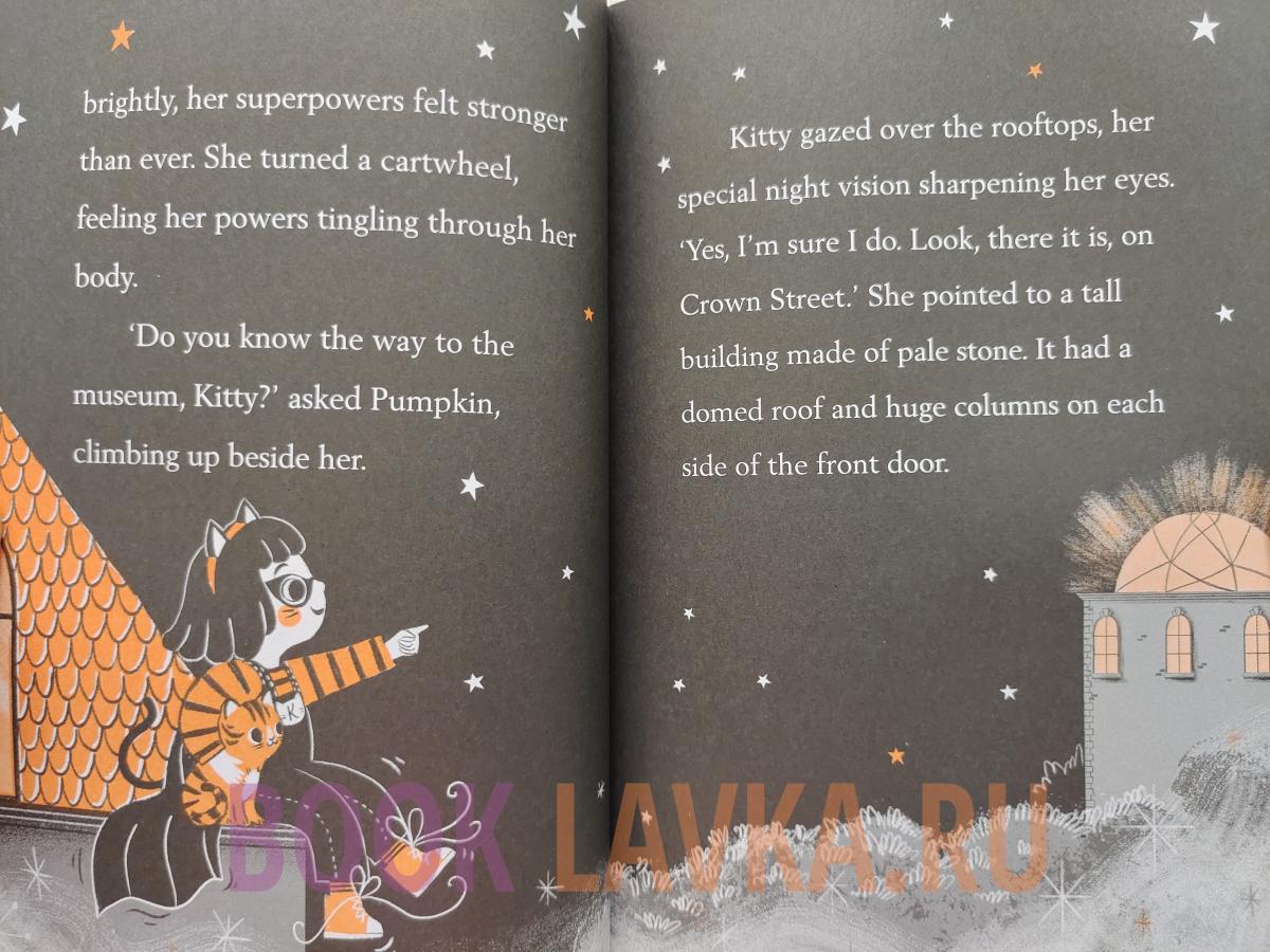 Присоединяйтесь к Китти и ее кошачьей команде на крышах для очаровательных приключений при свете луны. В этом рассказе Китти обнаружит, что быть супергероем - это нечто большее, чем просто использовать свои особые способности - она также должна научиться перехитрить злодеев. Кто украл драгоценную статуэтку Золотого тигра? Может ли Китти вернуть его в музей до восхода солнца?