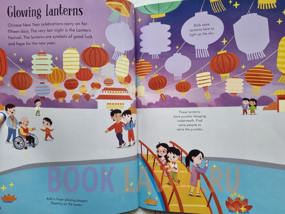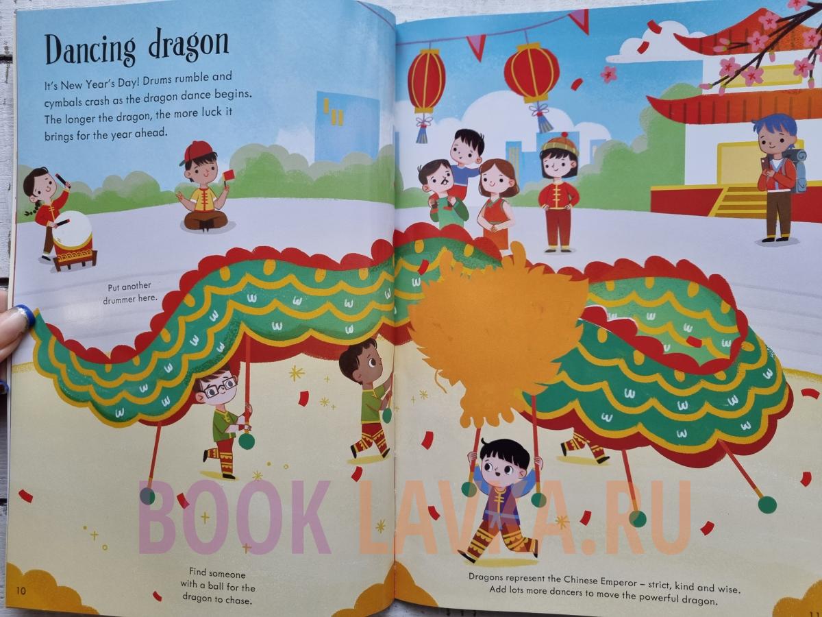 Присоединяйтесь к веселью с музыкой, танцующими драконами и ослепительными фейерверками, когда Цзин и ее семья празднуют Лунный Новый год! Добавьте более 150 наклеек, чтобы оживить сцены.