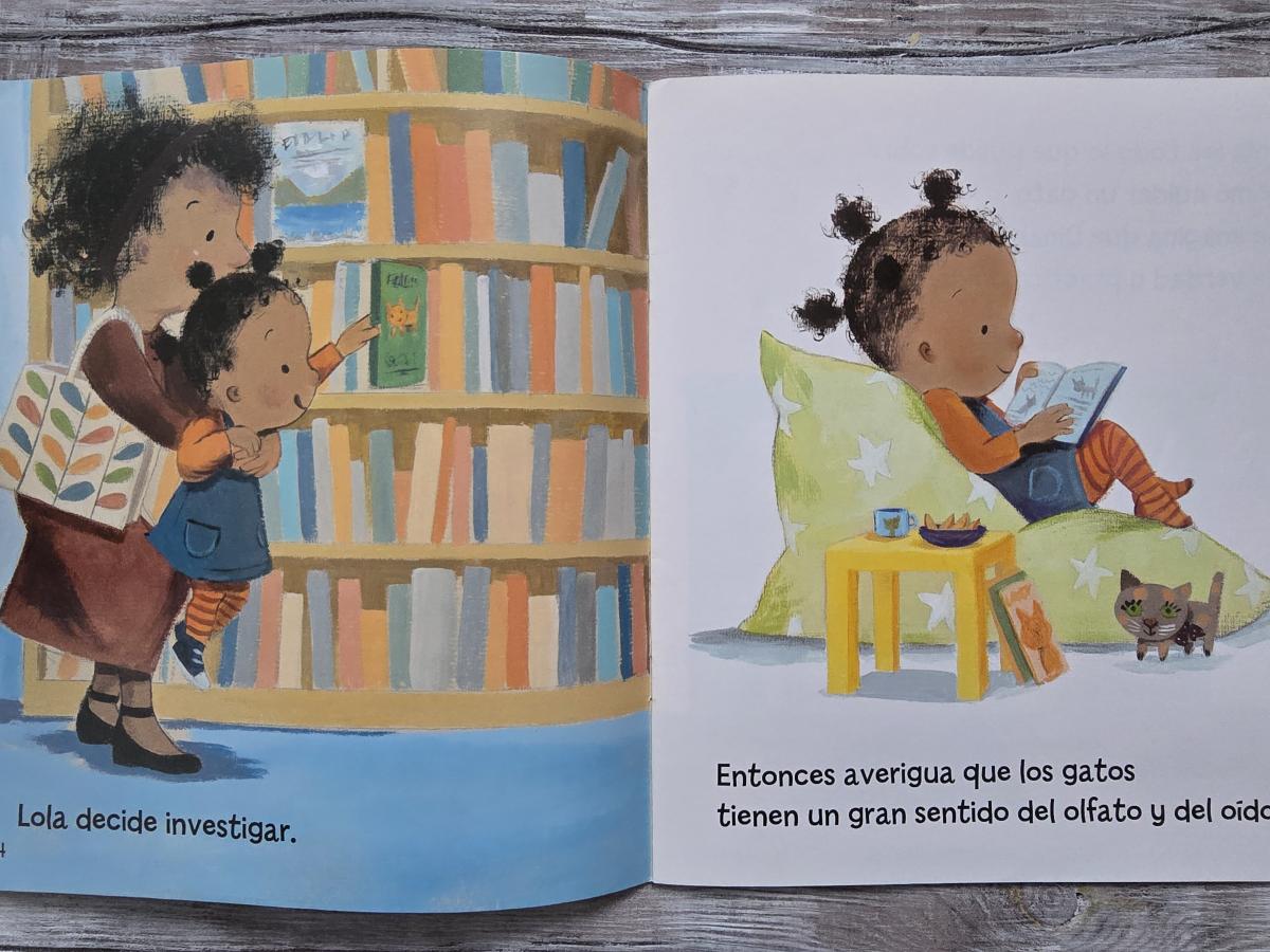 Теперь доступно на испанском языке! Лола, известная любительница книг, снова появляется с талисманом в пятом приключении серии "Лола Ли". Ее мама объясняет ей, что кошка дает много работы, поэтому Лола занимается уходом за своими игрушечными котятами и читает много книг о кошках. Вместе со своей мамой она изучает возможность усыновления кошек, покупает корм и припасы и посещает приют для животных. В конце концов, Лола выбирает свою кошку и терпеливо ждет, пока зверек адаптируется к своему новому дому. Любящая книги Лола и ее младший брат Лео любят проводить время вместе всей семьей, читая, занимаясь особыми делами и переживая новые приключения.