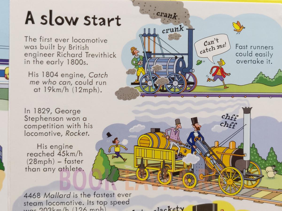 From traditional steam trains to super-fast bullet trains, this fact-filled information book allows children to look inside locomotives and find out how they work. Young readers can lift-the-flaps to discover fun facts and find out about the history of train travel.