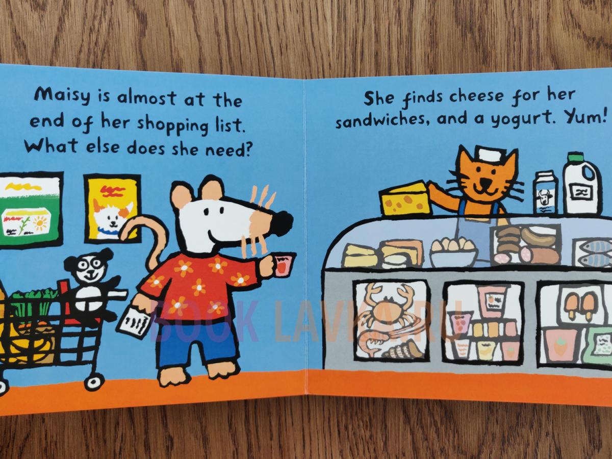 Сегодня Мэйзи собирается за покупками! Она находит тележку и выбирает хлеб, сыр, молоко и фрукты. После того, как она пройдет по всем проходам, пора платить, а потом домой на обед! Эта блестящая настольная книга включает в себя бонусное всплывающее окно и игровую сцену, а также тележку для покупок, наполненную множеством любимых блюд! Идеально подходит для творческих игр и помогает малышам узнать о поездке в супермаркет.