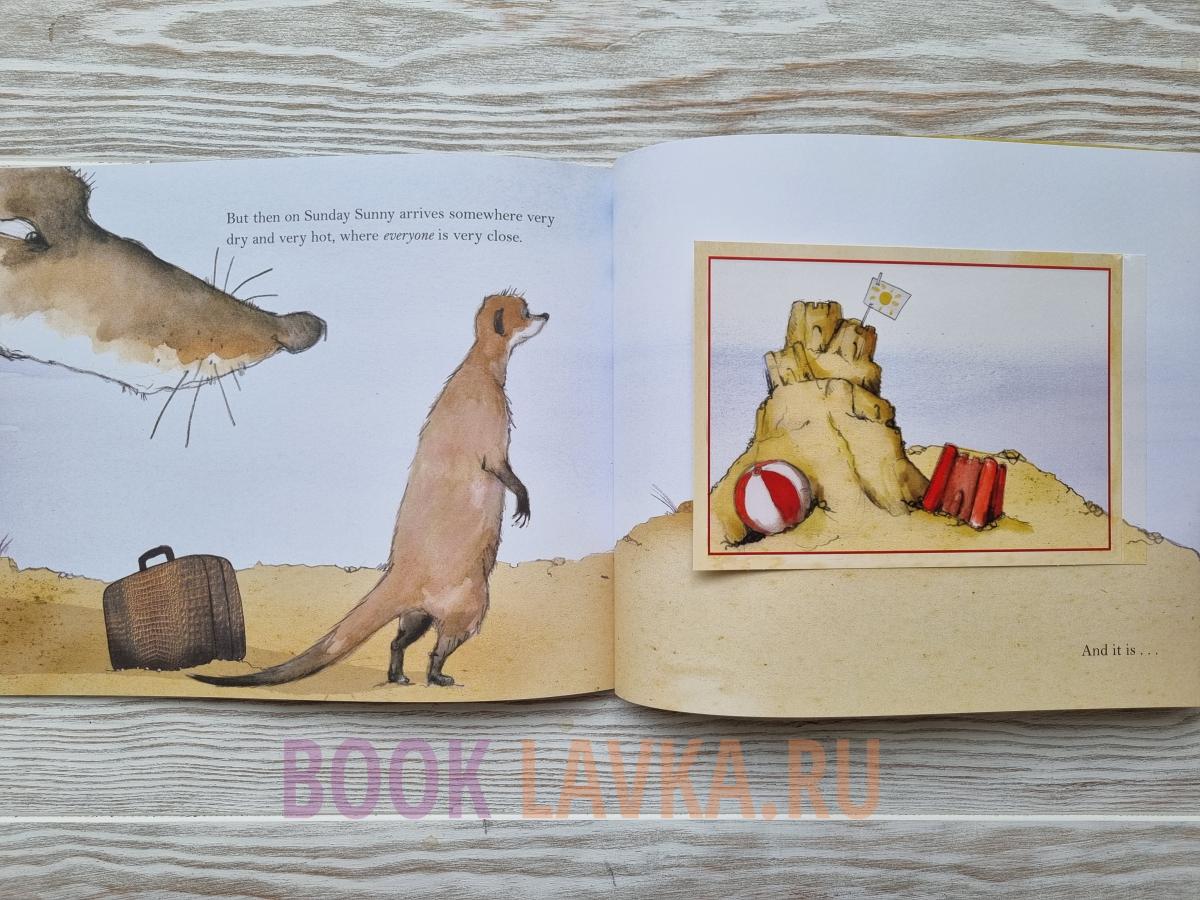Красивая книга с семью глянцевыми открытками, прикрепленными к страницам, изобилует юмористическими деталями и фактами! Здесь так много интересного, от газетных вырезок до точной информации о каждом виде мангустов, которых сурикат Санни посещает в своем путешествии.