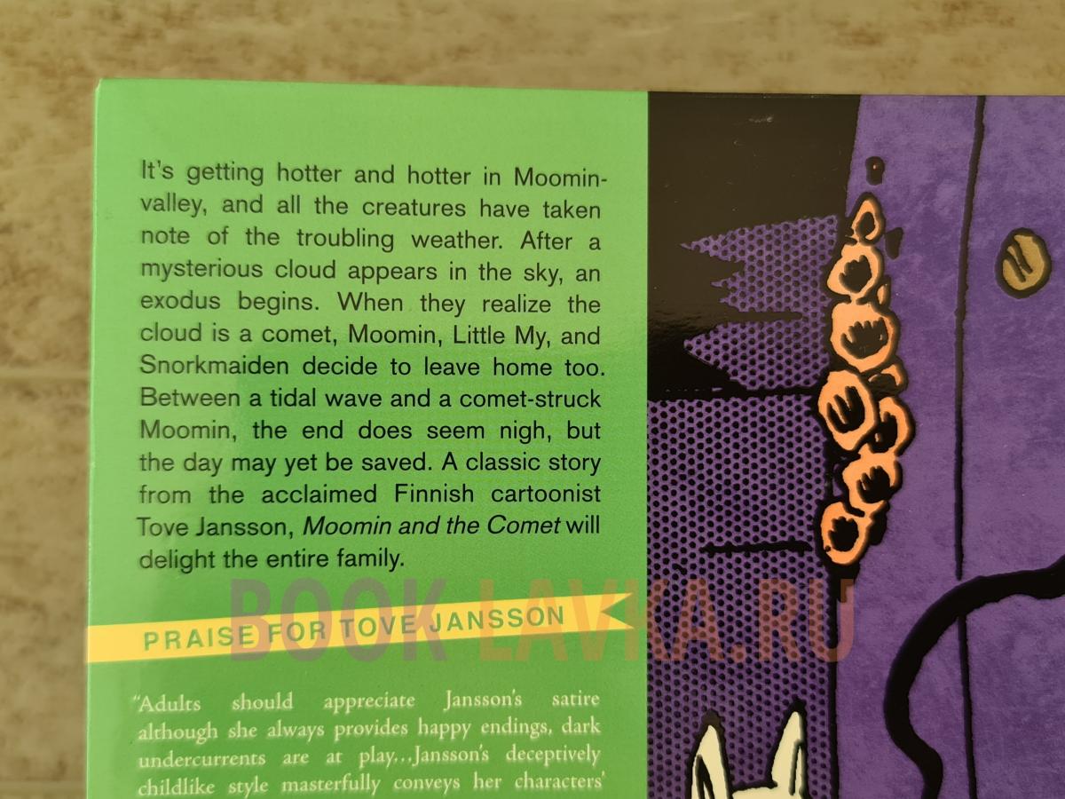 It's getting hotter and hotter in Moominvalley, and all the creatures have taken note of the troubling weather. After a mysterious cloud appears in the sky one day, an exodus begins. The Hattifatteners, the Nibling, Mrs. Fillyjonk (and all her children), and even Mymble pack up to leave the valley. When they realize the mysterious cloud is a comet headed straight for Moominhouse, Moomin, Little My, and Snorkmaiden decide to leave their home too. As the clock ticks down and the comet nears Moominvalley, the plot thickens. Between a tidal wave and a comet-struck Moomin, the end does seem nigh, but the day may yet be saved.