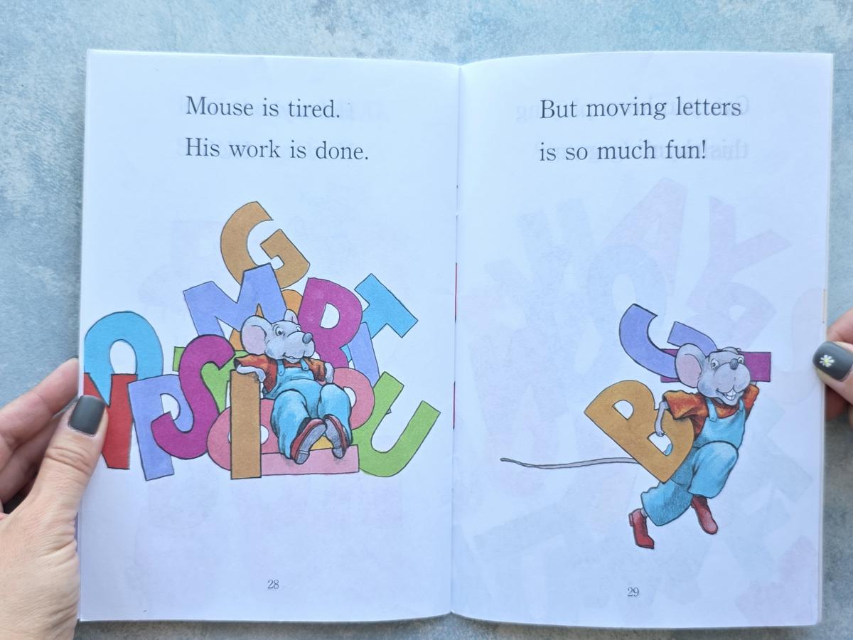 Маленькая мышка мчится вокруг замены букв — например, заменяет P на C, чтобы превратить «чашку» в «щенка». Начинающий чтец рифмует феерию, которая подчеркивает начальную замену звука.