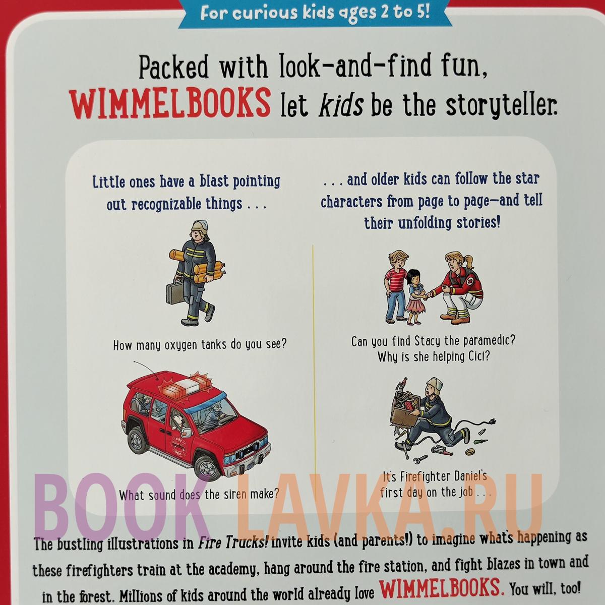 My Big Wimmelbook - Fire Trucks! follows brave firefighters and other first responders to a variety of bustling scenes in Wimmelcity. Readers start at the firehouse and rush out to respond to emergencies around the city before relaxing with the firefighters and their neighbours at the Wimmelfair. As they go about their day, readers are challenged to spot not just their favourite firefighters, but other great characters - from the local news crew to the firehouse Dalmatian to the police and paramedics - and many more charming characters.