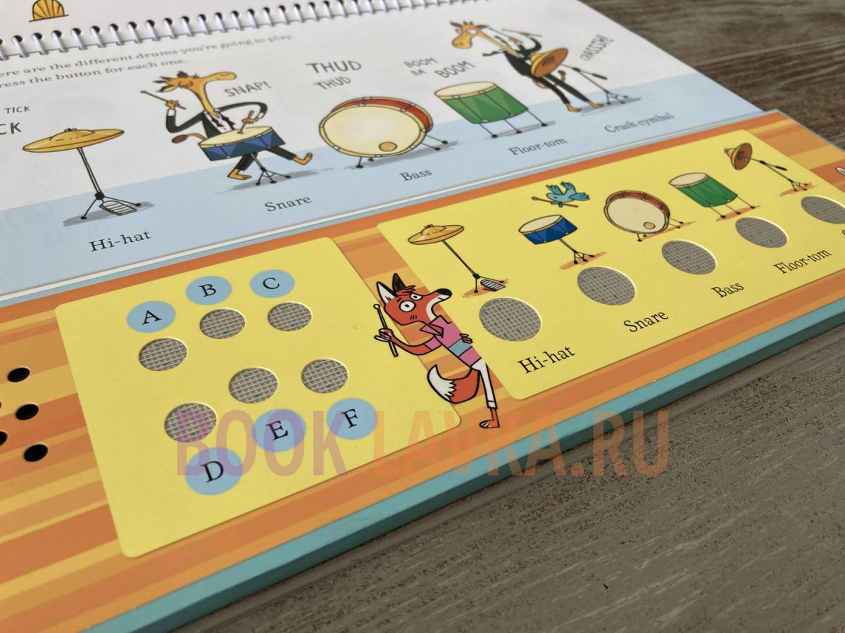 Children can discover the fun of playing the drums by pressing the buttons in this unique book. There are five different drum sounds including snare, bass and floor-tom, and a selection of tunes to play along with. Drummers can make up their own rhythms or play along to reggae, blues, funk or pop, and learn about rhythm and beat as they play.
