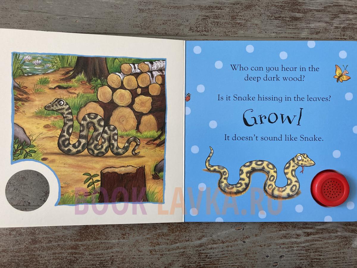 Who can you hear in the deep dark wood? Is it Snake, hissing in the leaves? Or Owl, hooting in the trees? Journey through the deep dark wood with Snake, Owl, Fox and Mouse and discover who is making the growling noise! Gruffalo Growl by Julia Donaldson and Axel Scheffler is from the My First Gruffalo pre-school range. A board book with a chunky sound button - perfect for small paws.