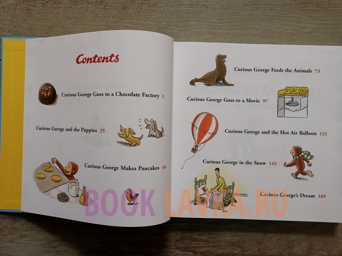 H. A. Rey and his wife, Margret, first introduced young readers to the big-hearted, fun-loving troublemaker-hero Curious George in 1941. In this two-hundred-page hardcover treasury, Curious George fans will find eight stories based on the popular primate, painted in Rey's original watercolor and charcoal style: Curious George Goes to a Chocolate Factory (1998), Curious George and the Puppies (1998), Curious George Makes Pancakes (1998), Curious George Feeds the Animals (1998), Curious George Goes to a Movie (1998), Curious George and the Hot Air Balloon (1998), Curious George in the Snow (1998), and Curious George's Dream (1998). A five-page essay about the author-illustrator team closes this appealing collection of adventures for Curious George fans young and old.