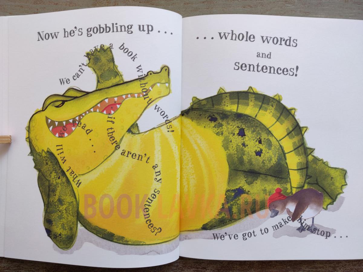 Что бы вы сделали, если бы собираясь почитать тихую сказку на ночь вы вдруг поняли, что в вашу книгу попал крокодил и был, не будем преувеличивать, в ярости? Захлопнули бы вы эту книгу и запихнули бы ее на книжную полку навсегда, или у вас хватило бы смелости заглянуть? Этот очень сварливый крокодил оказался в совершенно неправильной книге, поэтому он продолжает выгрызать отверстия в страницах и сбежать из книги, которая совершенно не подходит ему, но доставляет огромное удовольствие читателю!
