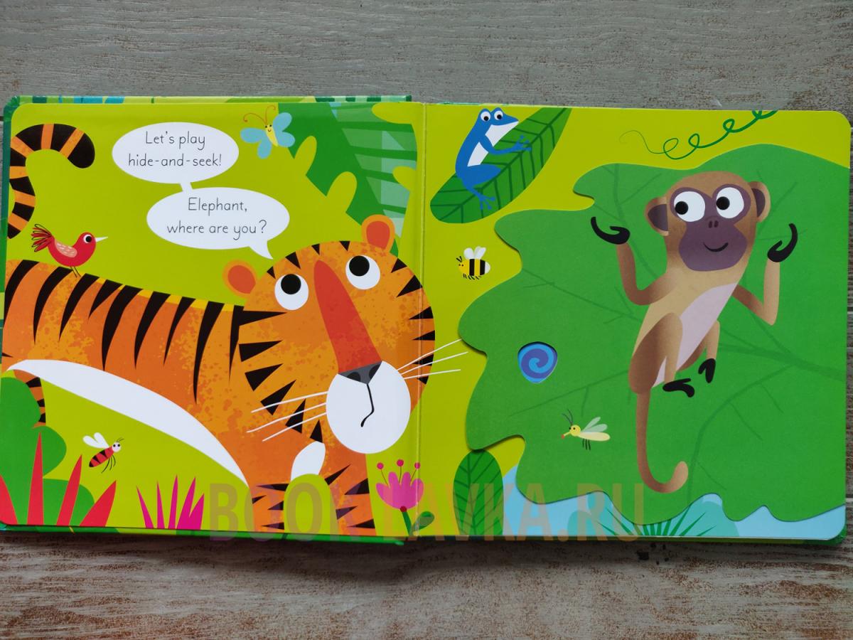 Join tiger for a game of hide and seek with his friends! Little ones will love lifting the large flaps to find all the adorable animals hiding behind, including elephant, sloth, rhino and orangutan. With bright, vibrant illustrations by Gareth Lucas and simple text, this is a charming book to enjoy time and time again.