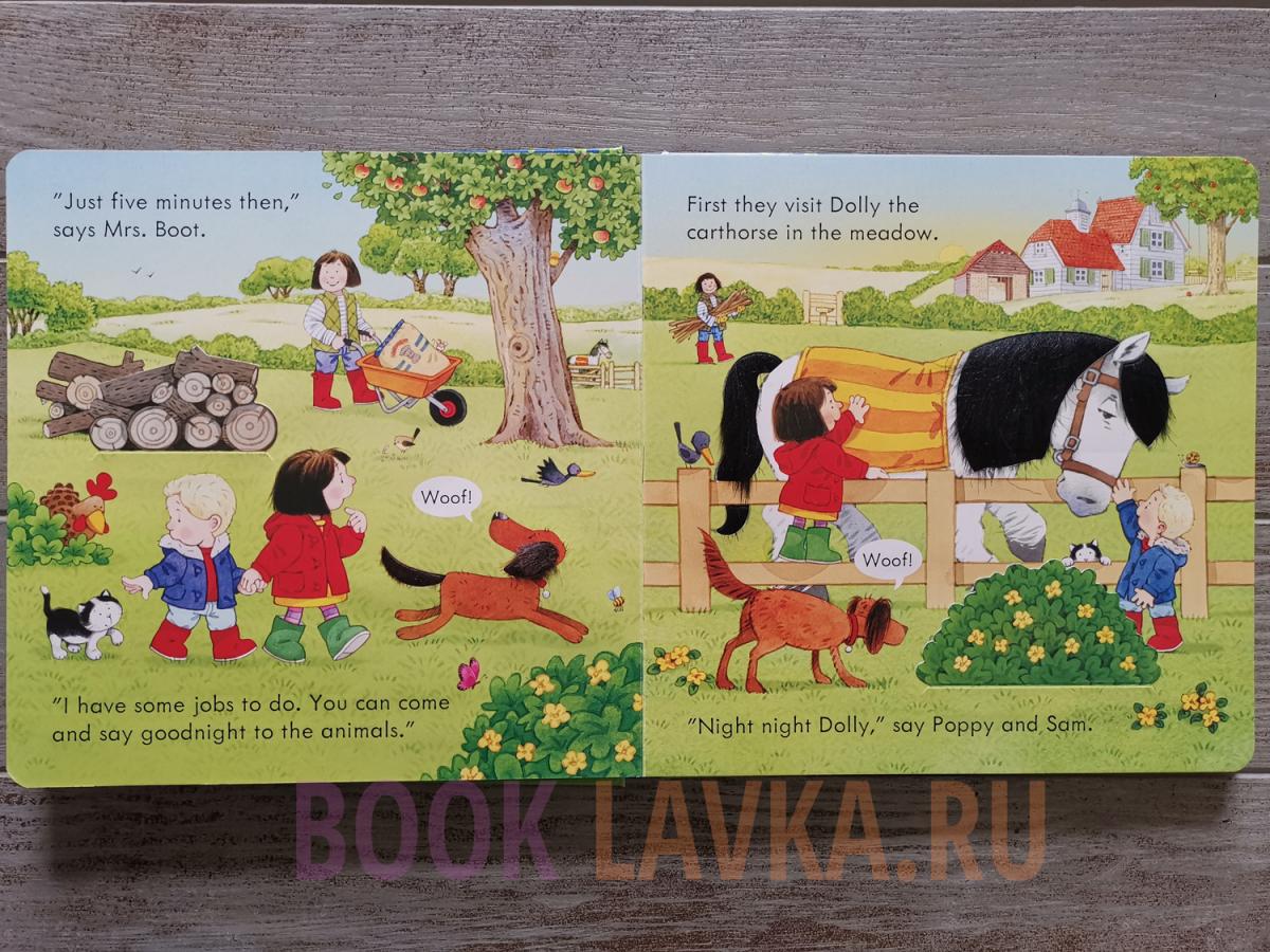 It's the end of a busy day on Apple Tree Farm. Join Poppy and Sam as they say goodnight to all the animals, including Woolly the sheep, Curly the pig and Daisy the cow. With touchy-feely patches, flaps to lift and the Little Yellow Duck to spot on every page, this charmingly illustrated book is perfect for sharing with little ones at bedtime.