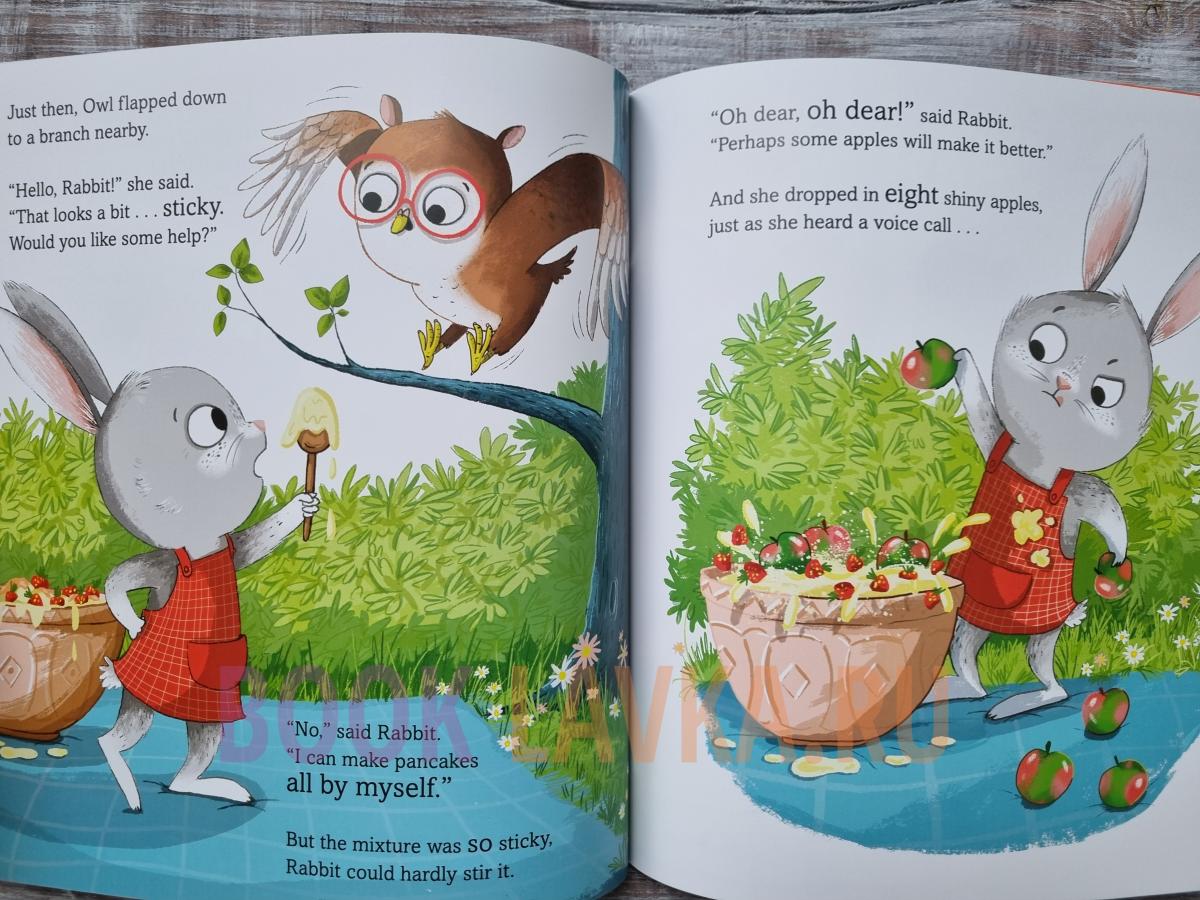 Настал долгожданный день блинного пикника! Кролик с воодушевлением решает приготовить угощение сама, но книга рецептов бесследно исчезла. Чтобы не сдаваться, Кролик пытается вспомнить рецепт на ходу и добавляет в тесто сироп, клубнику, яблоки и ещё кучу всего. Друзья предлагают помощь, но она упрямо хочет справиться сама. Смесь тем временем становится липкой, комковатой и выглядит странно. И что теперь праздник... испорчен? Или всё-таки самое вкусное блюдо получается тогда, когда готовишь его вместе с друзьями?