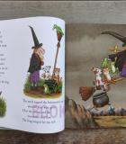 The witch and her cat fly happily over forests, rivers and mountains on their broomstick until a stormy wind blows away the witch's hat, bow and wand. Luckily, they are retrieved by a dog, a bird and a frog, who are all keen for a ride on the broom. It's a case of the more, the merrier, but the broomstick isn't used to such a heavy load and it's not long before... SNAP! It breaks in two! And with a greedy dragon looking for a snack, the witch's animal pals better think fast!