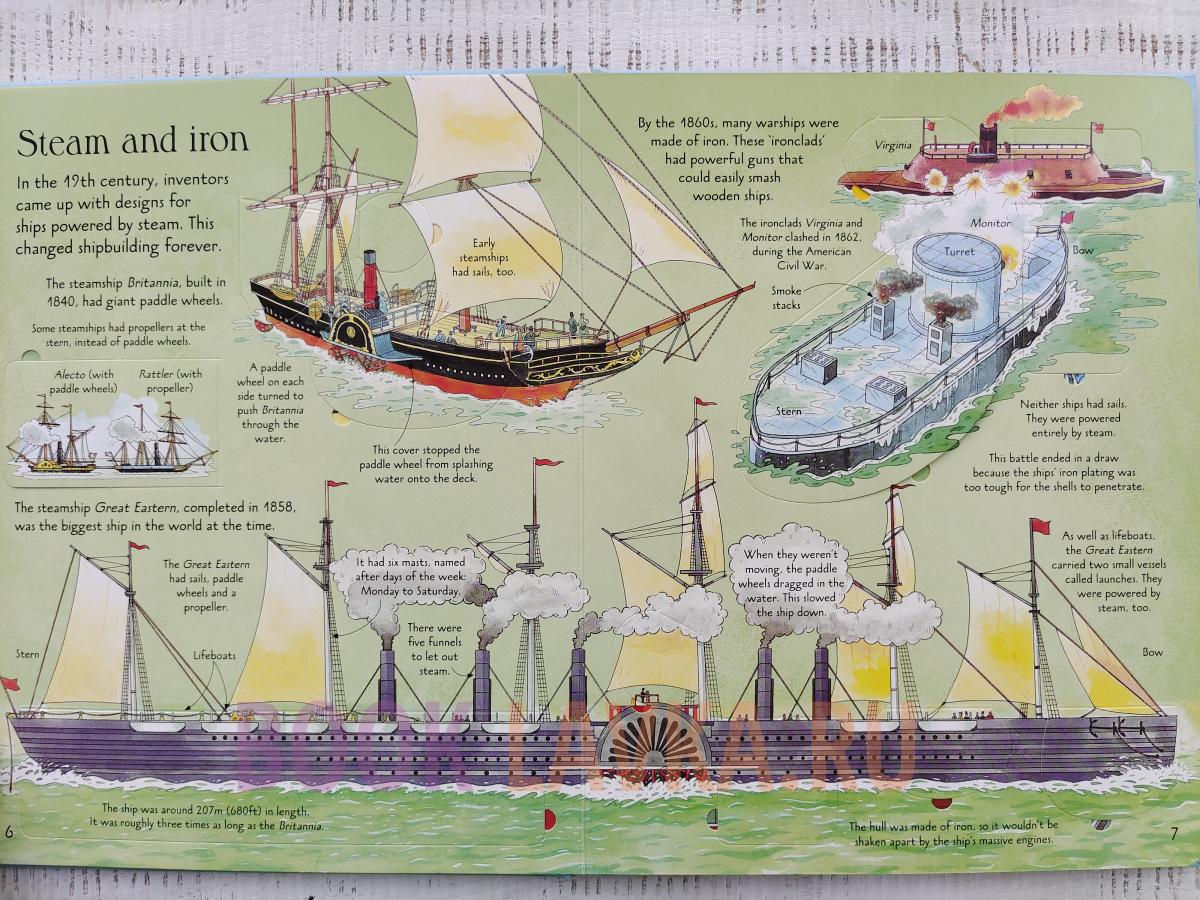 carriers. Lifting the flaps reveals the insides of ships from across the ages, explaining in simple, clear language what they were used for, how the