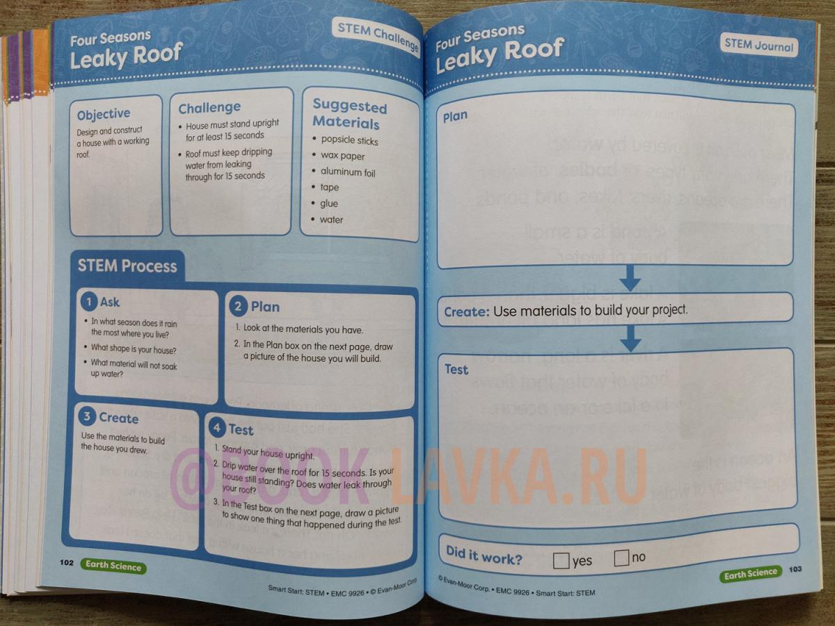 Help your kindergarten-level students learn STEM skills with Evan-Moors Smart Start STEM: Kindergarten. This workbook introduces important science concepts through stories, activities, and fun worksheet challenges that develop foundational science, technology, engineering, and mathematical concepts. Color-coded pages provide visual links for physical science, life science, and earth science topic areas. Students will learn a concept, skills, and complete a challenge at the end of each chapter. Grade K/kindergarten. 128 full-color pages. Consumable and non-reproducible. Answer key included with reduced-size student pages.