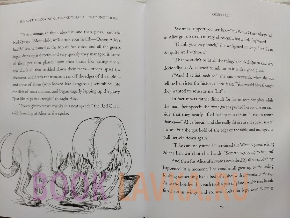 В этом издании представлен полный текст Льюиса Кэрролла с иллюстрациями Криса Ридделла. Иллюстрации Криса Ридделла, опубликованные через 200 лет после рождения первого иллюстратора Алисы, сэра Джона Тенниела, также выдающегося политического карикатуриста своего времени, установили новую планку с точки зрения совершенства благодаря его уникальной, богатой и запоминающейся интерпретации мира Кэрролла.