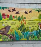 Маленьким детям понравится слушать пение птиц, когда они будут листать страницы этой очаровательной книги! Каждая красиво иллюстрированная сцена содержит простой текст и вырезанные формы для поиска, а также звуковую кнопку, которую нужно нажать, чтобы услышать различные звуки птиц, включая чириканье птенцов дроздов, стрекотание сороки, кряканье утят и пение кукушки.