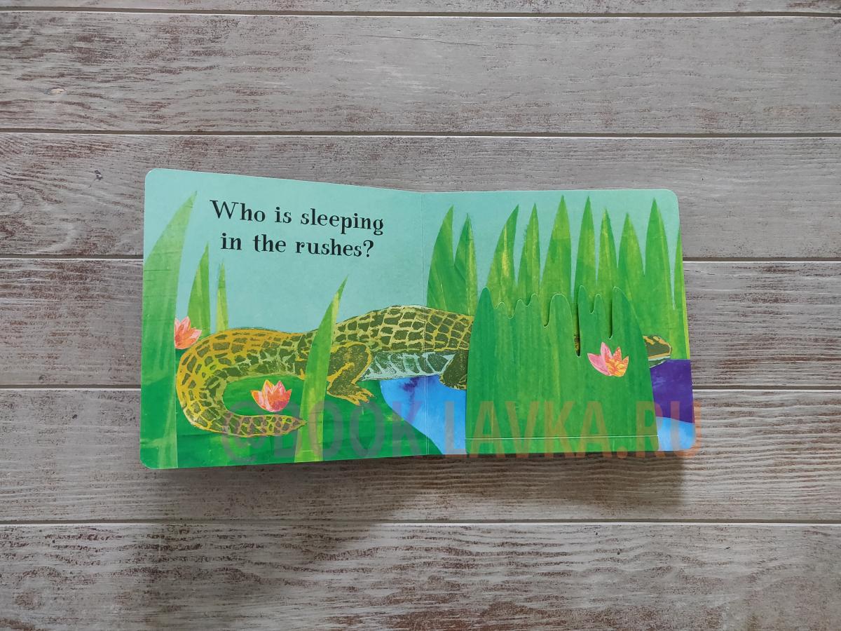 Who is sleeping in the river, under the leaf and in the tree? Lift the flaps