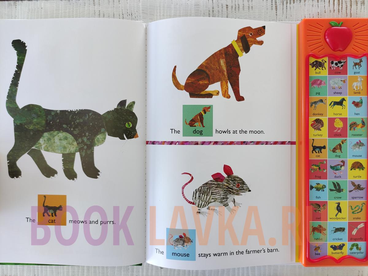 Spend a day at the farm to meet -- and hear -- a mooing cow, a neighing horse, a crowing rooster, and more! With classic Eric Carle animal artwork on every page and 30 sound buttons that play animal names and sounds, Around the Farm makes learning new words fun!